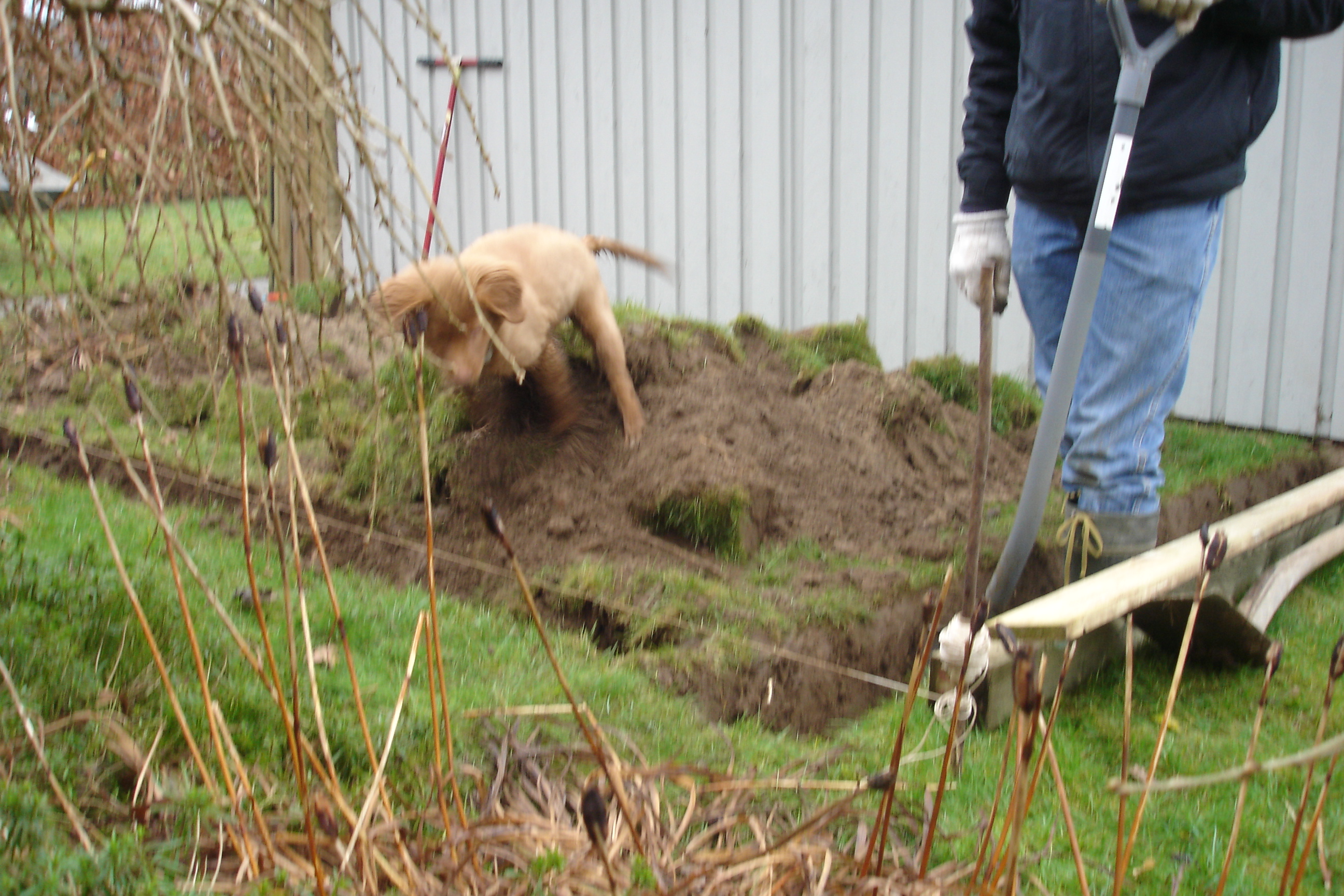 Hundegården er nu helt færdig og der er også blevet plads til et hundehus. Det er ikke meningen at Kira skal tilbringe en masse tid i hundegården, men så er der et sted til hende og hendes ting. Hun er også begyndt at tage alle nabogrundendene i brug, så der skal være lidt styr på hvad hun laver.